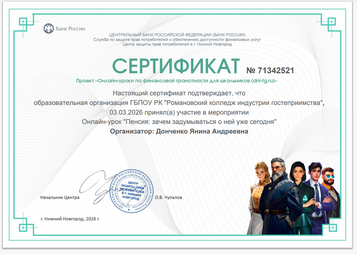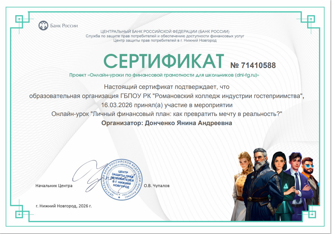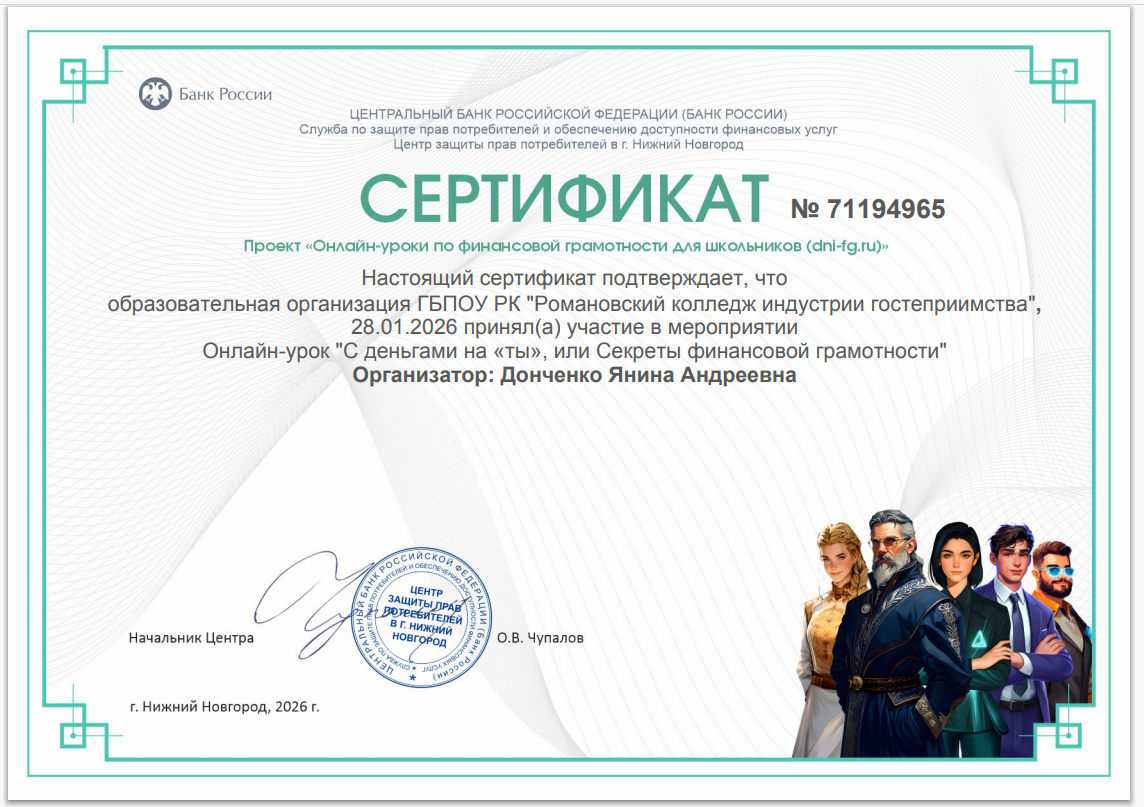 в рамках проекта Банка России, Донченко Я.А. Сертификат