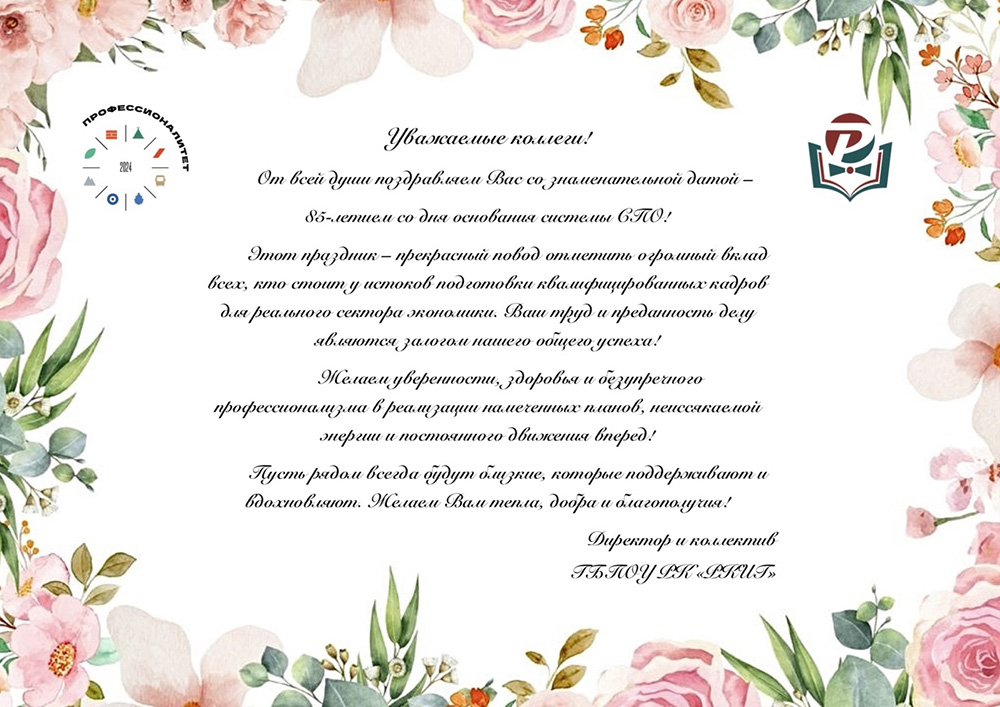 Поздравление директора колледжа с Днем СПО