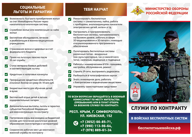 Преимущество прохождения военной службы по контракту в войсках беспилотных систем