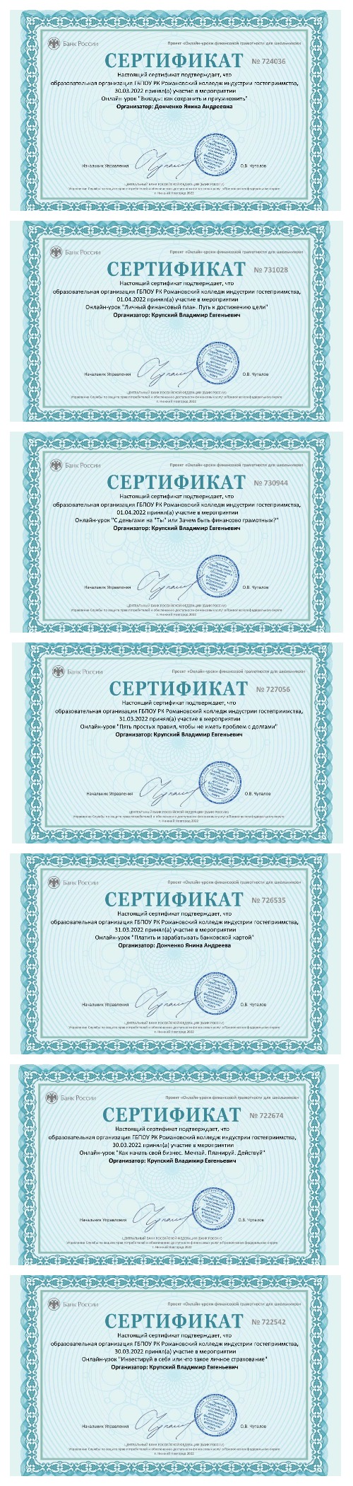 гостеприимства продолжают принимать участие в онлайн-уроках финансовой грамотности,