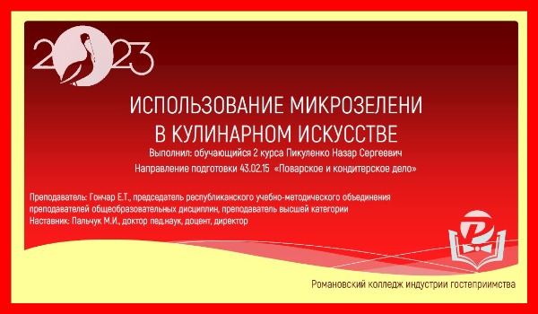 микрозелени в кулинарном искусстве», преподаватель