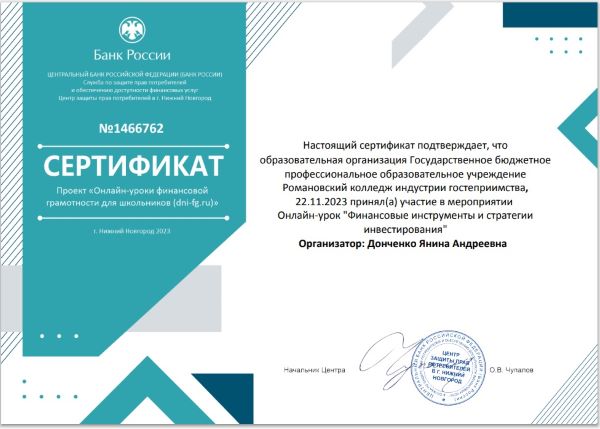 ноября 2023 года в Романовском колледже индустрии