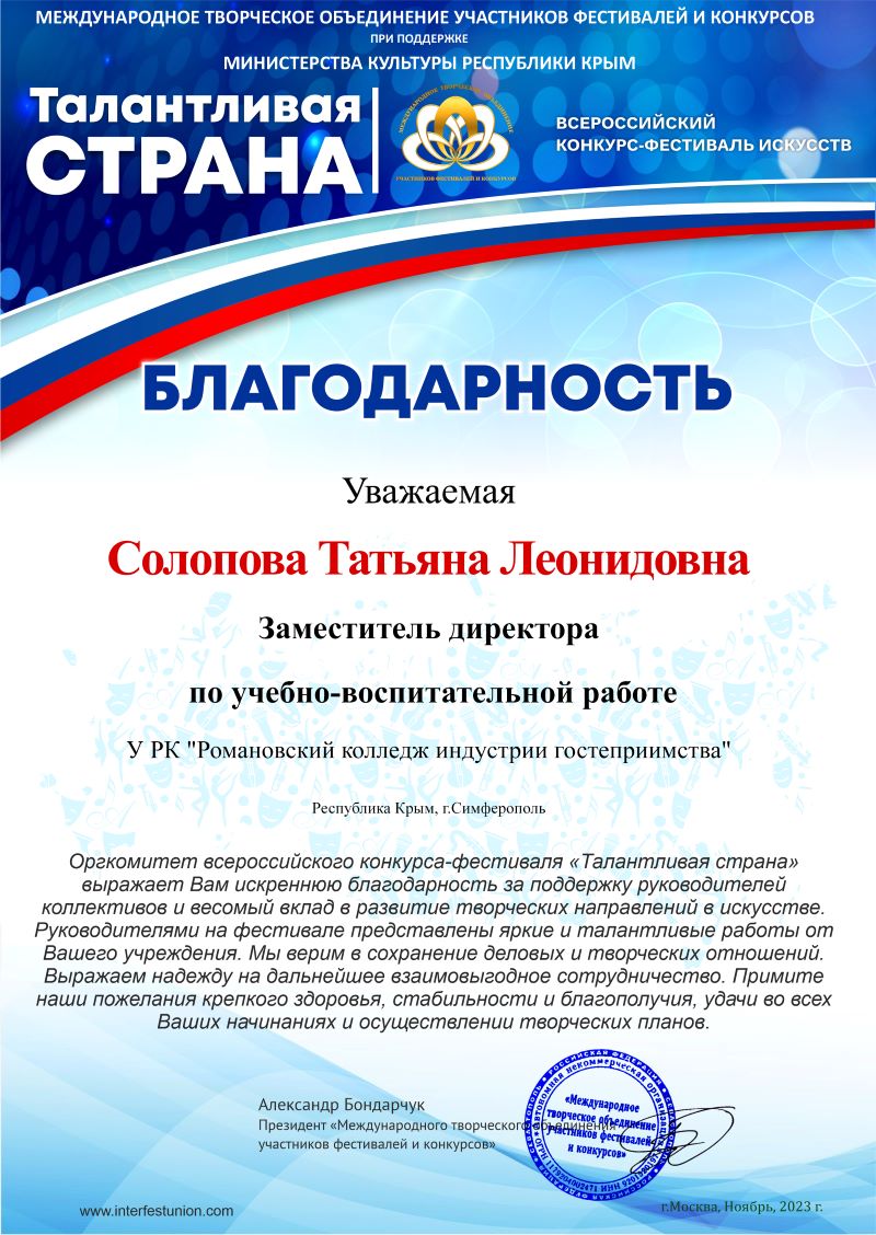 искусств «Навстречу талантам!» и «Талантливая