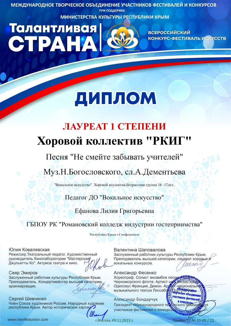 Хореографический коллектив РКИГ завоевал Диплом