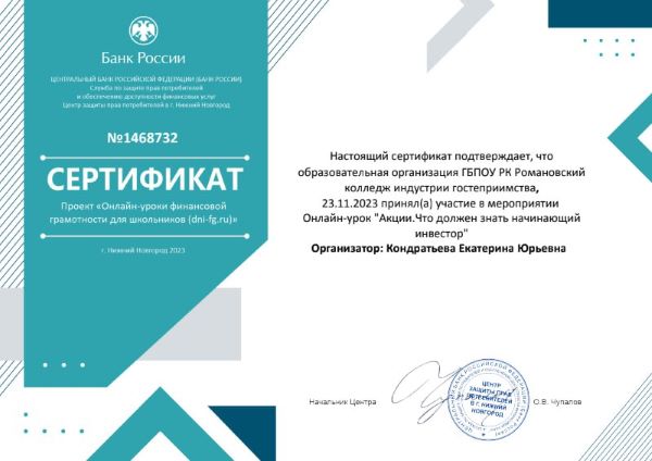 Кондратьевой Е. Ю. приняли участие в онлайн-уроке