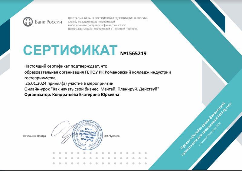 Романовского колледжа индустрии гостеприимства
