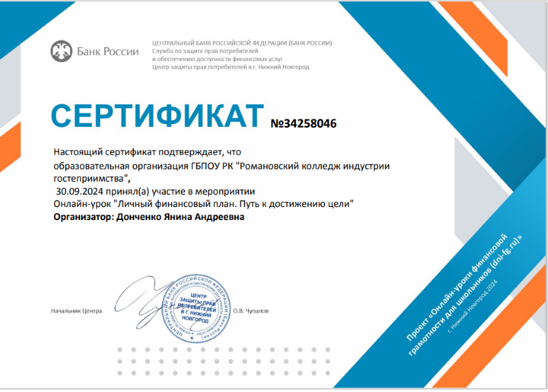 онлайн урок по финансовой грамотности «Личный