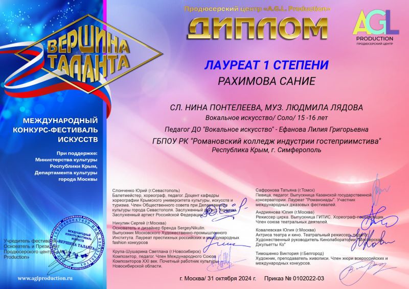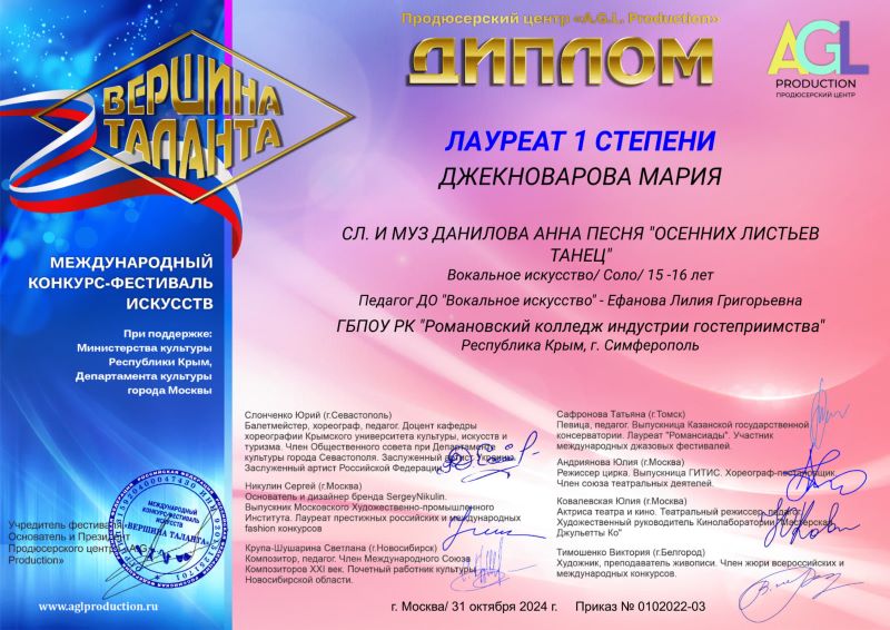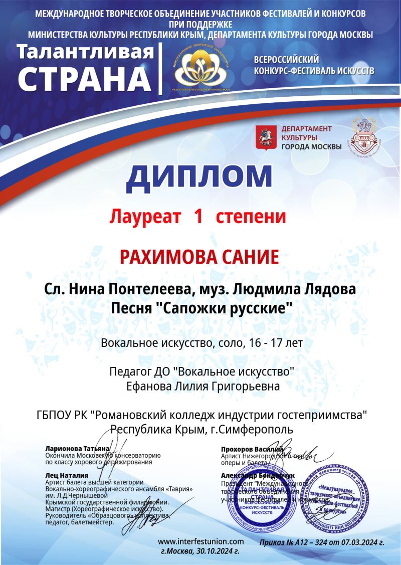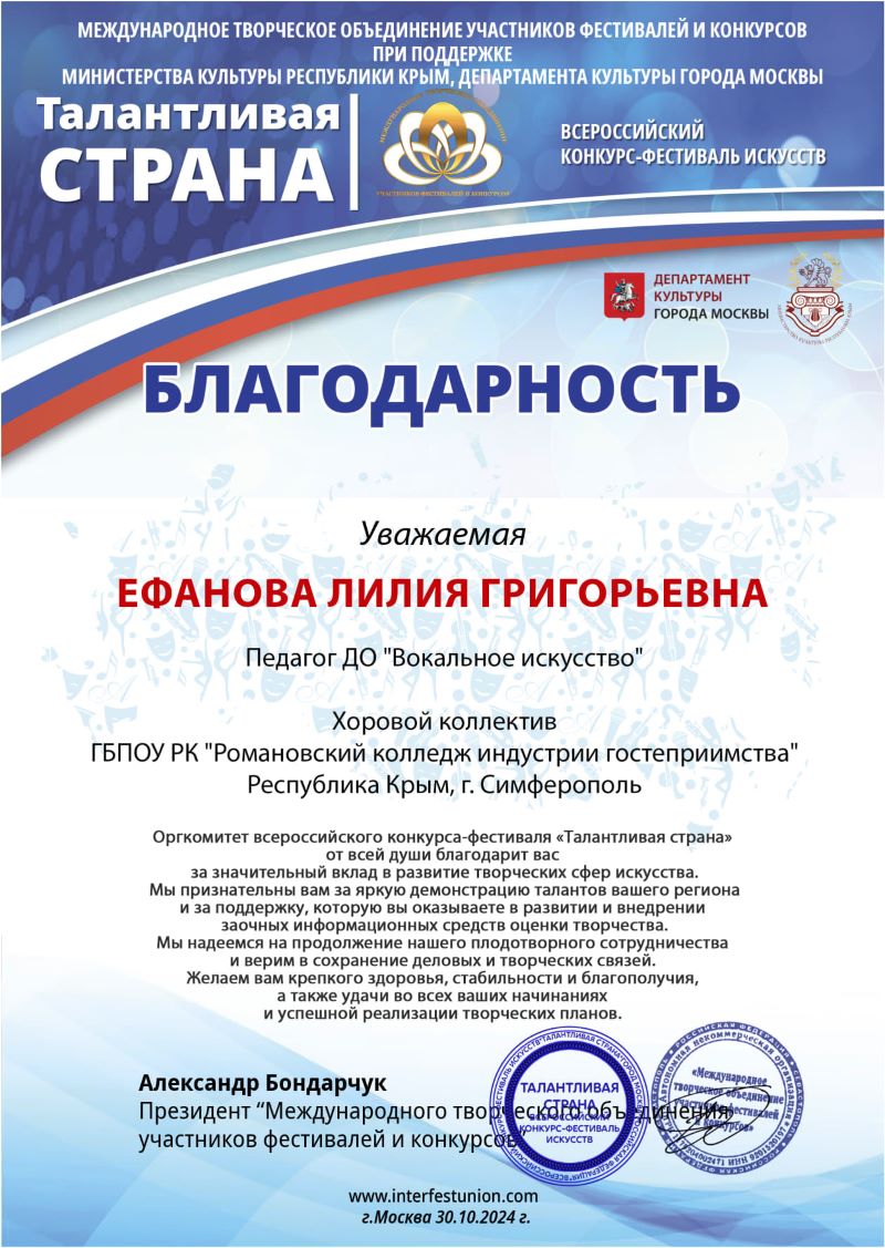 31.10 2024 г. – Международный конкурс-фестиваль