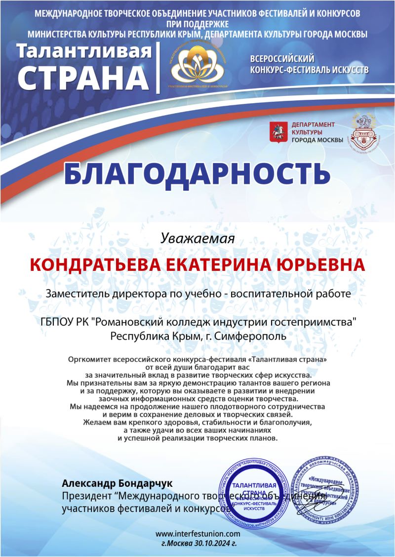искусств «Талантливая страна» и Международный