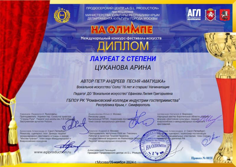 конкурсах «На Олимпе» и «Вершина таланта».