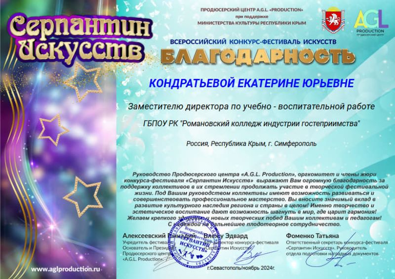 директора Романовского колледжа по УВР – Кондратьевой