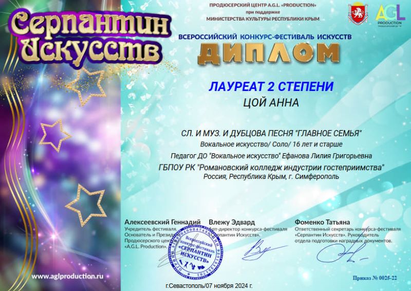 I степени, а Цой Анна,