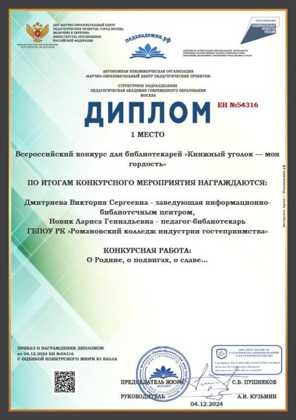 колледжа индустрии гостеприимства Дмитриева