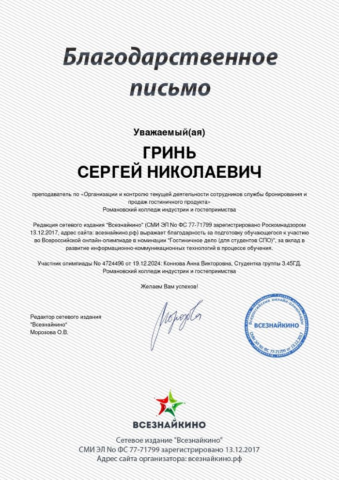 выполнил Гринь