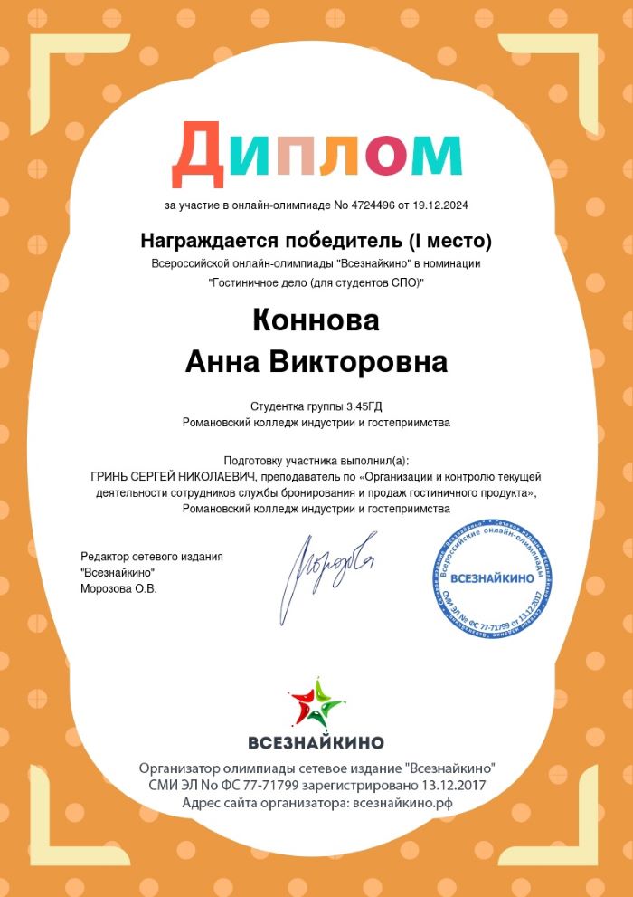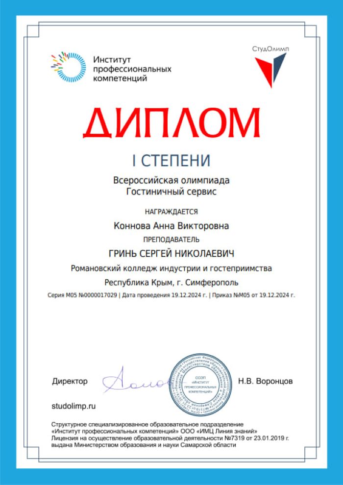 Романовского колледжа индустрии гостеприимства.
