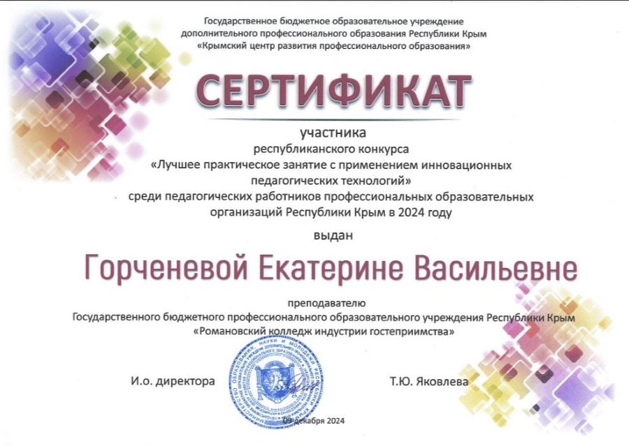 в 2024 году выдан преподавателю ГБПОУ