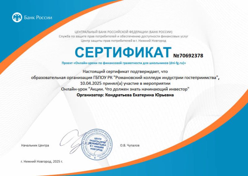 апреля 2025 года преподаватель Кондратьева