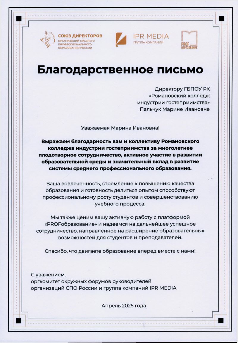 Благодарственное письмо