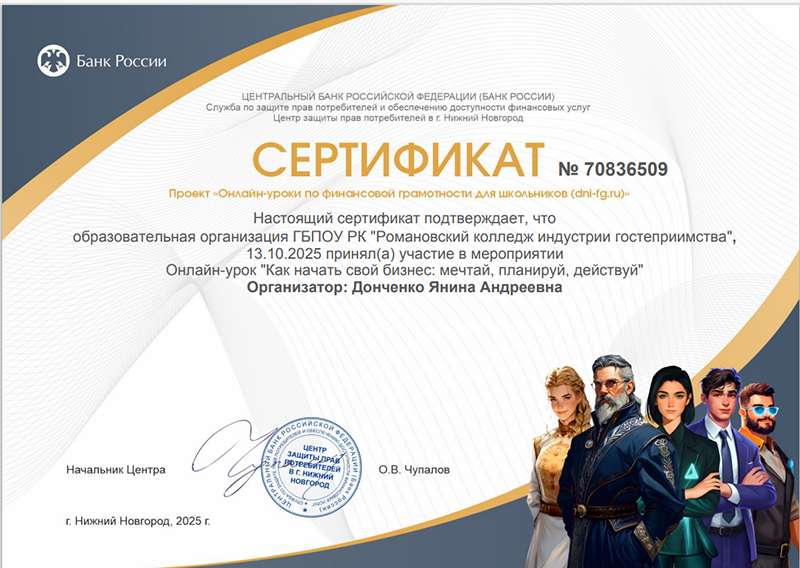 грамотности «Как начать свой бизнес: мечтай, планируй,