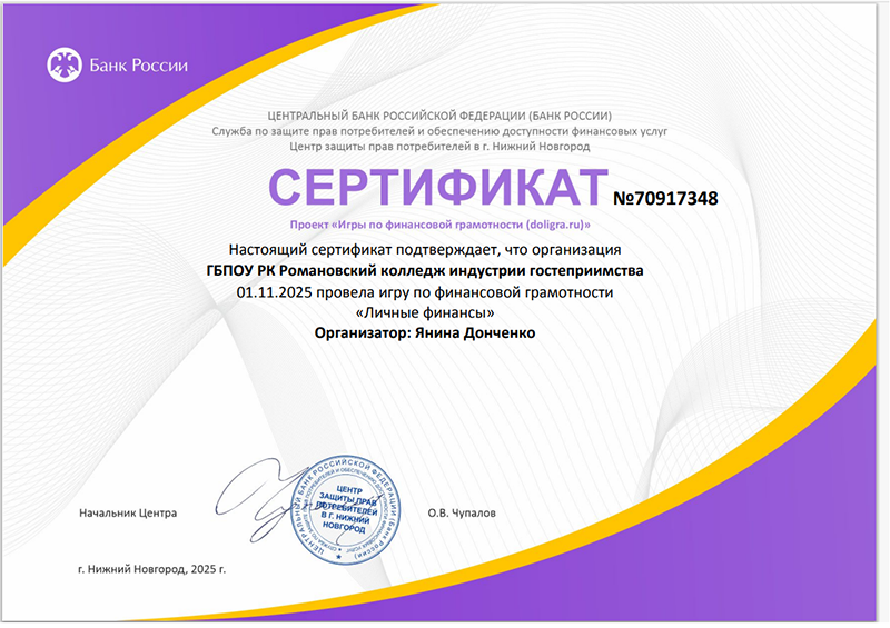 01 ноября 2025 года преподаватель Донченко Я.А.