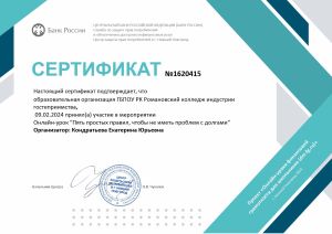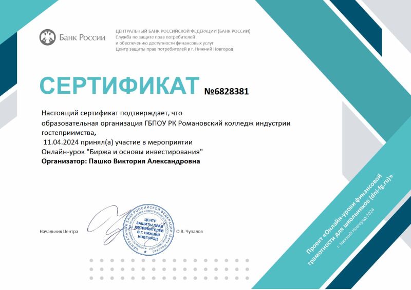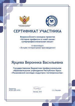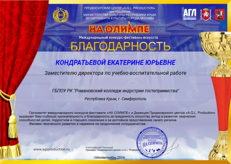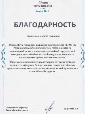 Романовского колледжа индустрии гостеприимства.