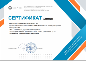 вручили ГБПОУ РК «Романовский колледж индустрии