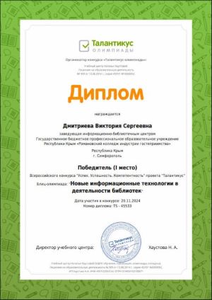центром ГБПОУ РК «РКИГ» Дмитриеву