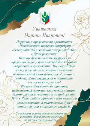 Поздравление с днём рождения директору Романовского колледжа индустрии гостеприимства