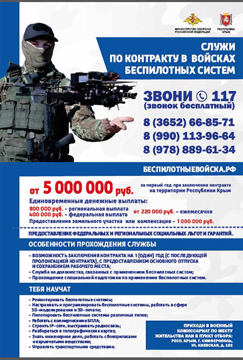 Преимущество прохождения военной службы по контракту в войсках беспилотных систем